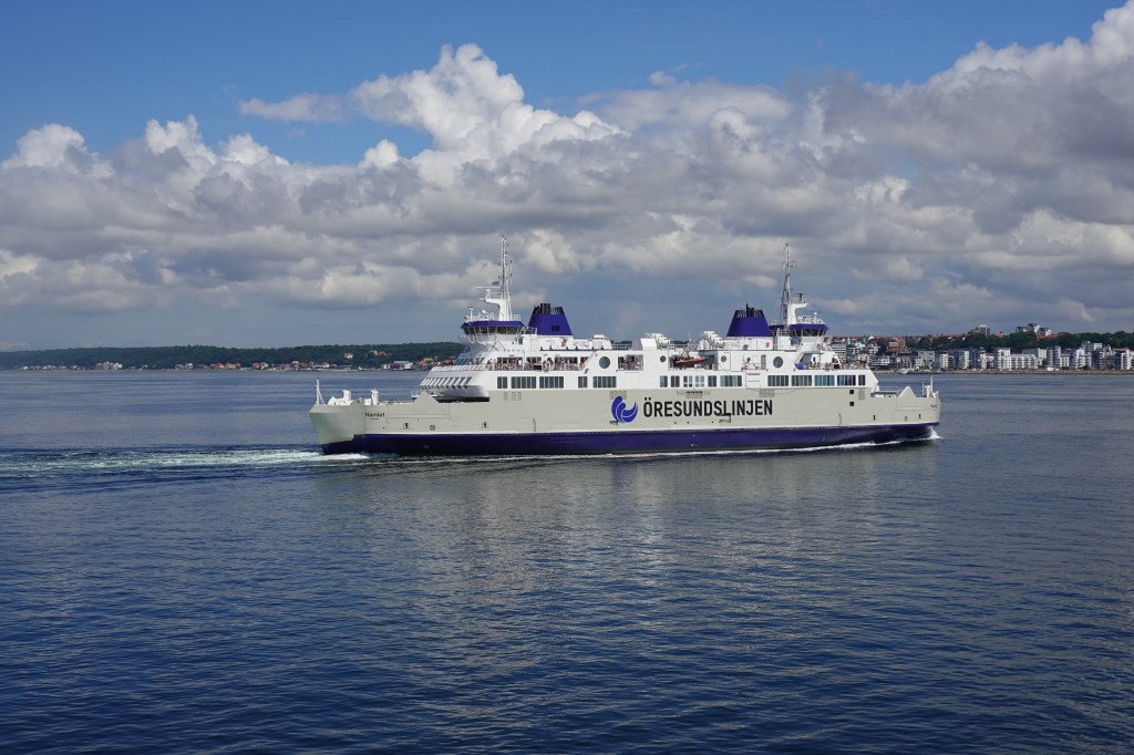 Travelling from Sweden to Denmark you need to cross the Oresund strait. It turns out to be cheaper to cross by ferry at Helsingborg, rather than the bridge from Malmo, which was a surprise. The crossing is only 4km, and we spotted 3 ferries working the day we travelled.