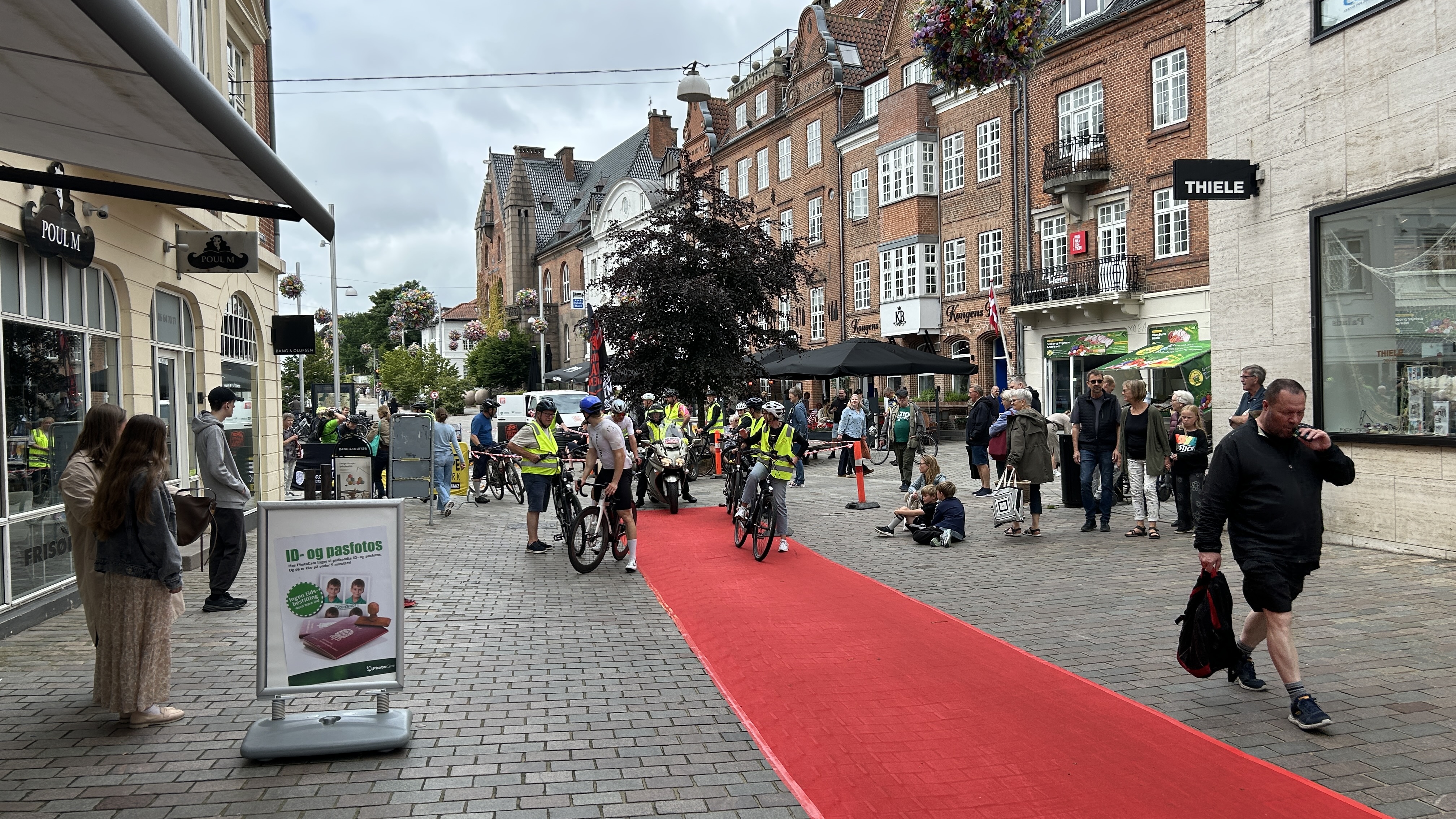 We saw cyclists arriving in town. They were doing different distances (some very long!), all ending in the city centre and ready to pedal along the red carpet. Interesting that it was all sorts of people (sporty types to children and grannies), and types of bike (racers, MTBs, and even electric bikes). Typical Danish inclusiveness.