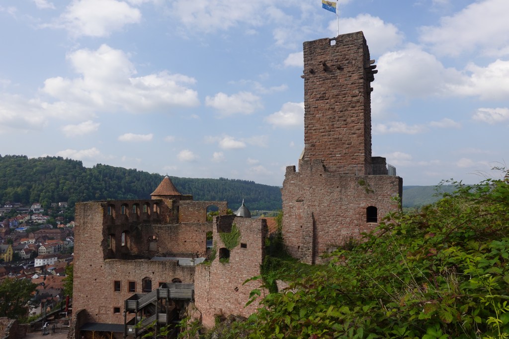 A few km from the campsite was this small town on the Main river. We walked along the river, through the hills to the castle, then down to the town for coffee. Lots of visitors from a big river cruiser moored up on the quay.